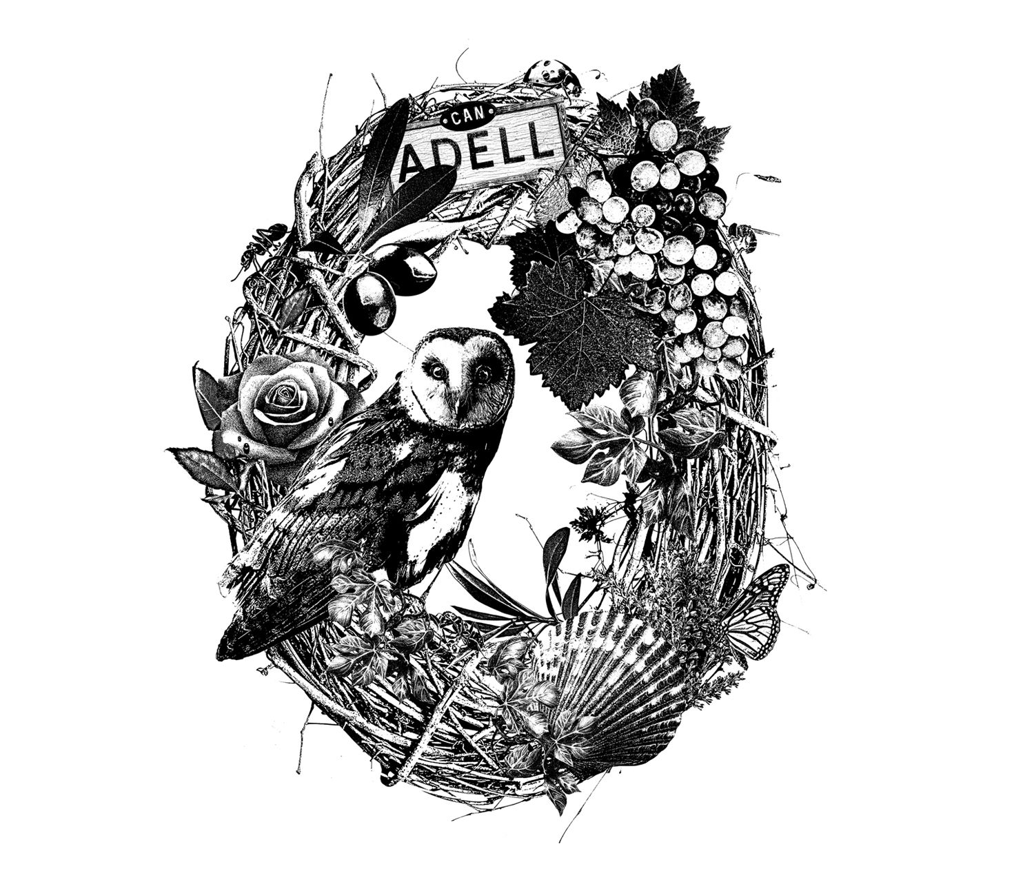 Verdell & Gardell are two very good and special wines, each one has its own history. I was requested to illustrate these both particular histories. A kind of heraldic portraits. Two crests. One for the Verdell, made of stone. Another for Gardell, made of living nature. One to represent the old winery tradition behind it. And the other to express its long life ahead.